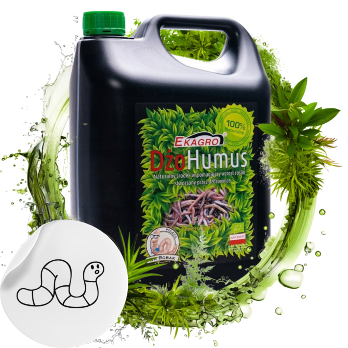 DżoHumus to płynna substancja organiczna wytworzona w przewodzie pokarmowym dżdżownic. To bezpieczny i uniwersalny środek wspomagający wzrost i rozwój roślin – naturalny i bez dodatków nawozów azotowych.